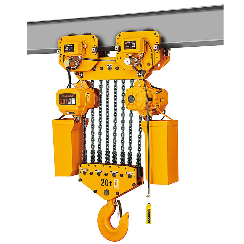 20噸電動葫蘆是配有8根起重鏈條,并且鏈條配有緩沖彈簧,起重電機和葫蘆是分別在電動行車的兩側,單速型環鏈電動葫蘆可應用于企業施工、物流搬運、工廠機器轉移、碼頭貨運等場景。